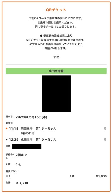 5月2日、ロサンゼルス国際空港⇒成田空港間の航空機のチケット購入した時点で、後は羽田空港⇔成田空港間のリムジンバス代金だけなのでこの時点で予約・購入いたしました。