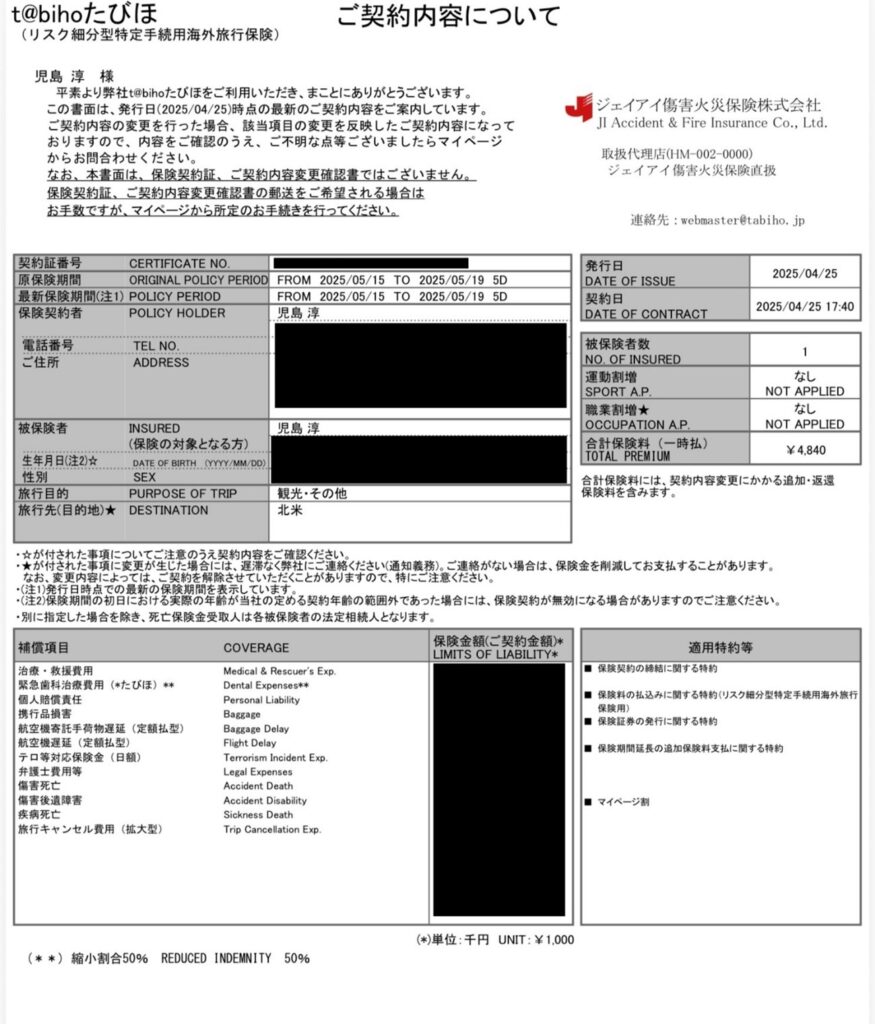 (ロサンゼルス国際空港⇔ユニオンステーション間のフライアウェイバスの乗車運賃代金はバス内のスキャナーでカード払いのため反映しません。筆者はこの日にJTBさんの「たびほ」にて海外旅行保険に加入しました。)