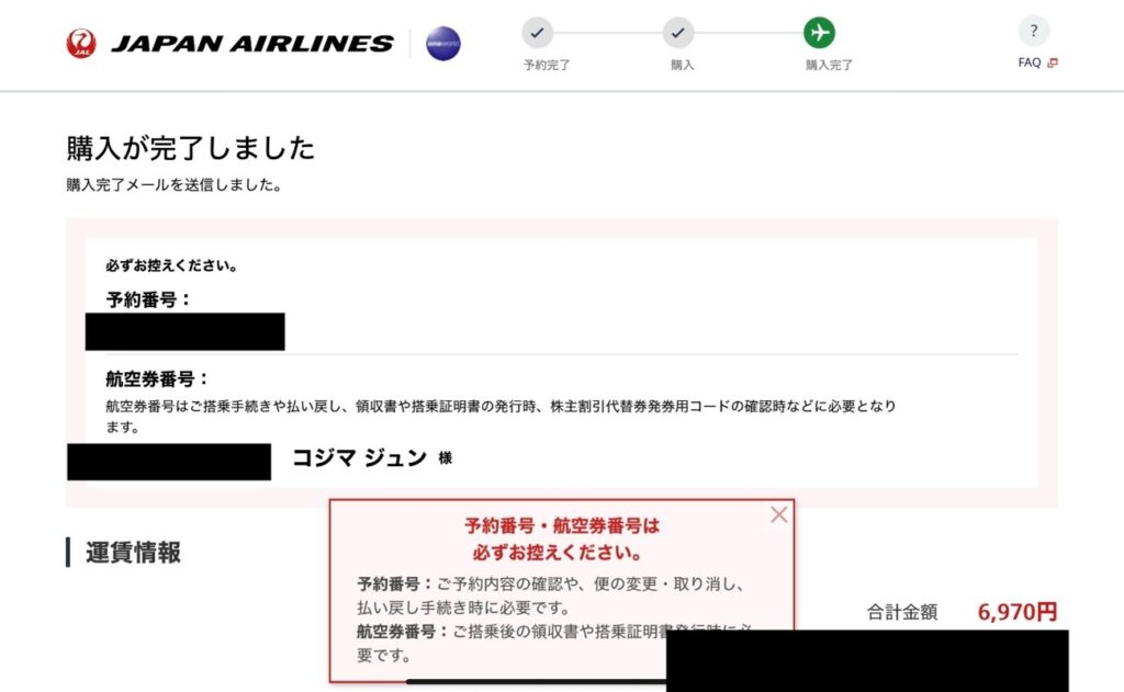 そして、この時点ですべての段取り・チケット購入が終了しました。