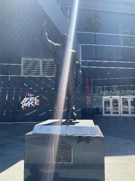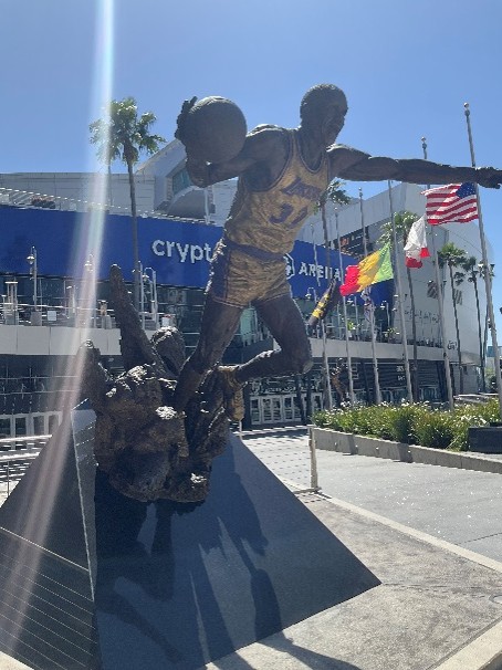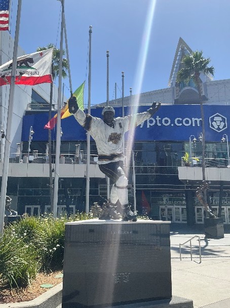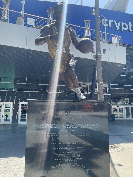 センターの外には、レイカーズのレジェンド ジェリー・ウエスト/マジック・ジョンソン/シャキール・オニールや、NHL選手グレツキーやオスカー・デ・ラ・ホーヤの銅像が建てられています。