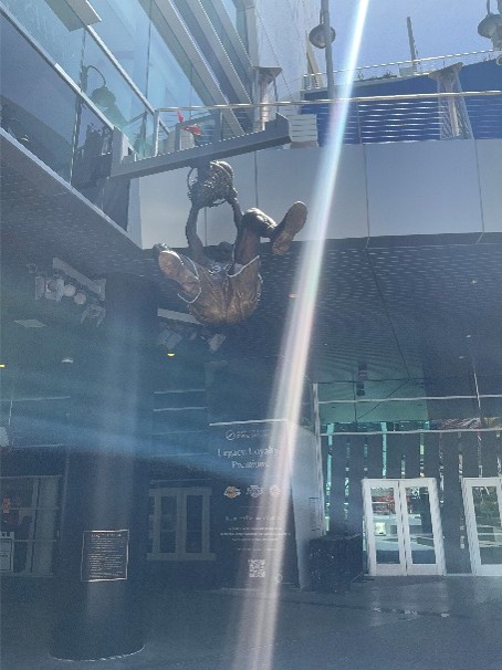 NBAやNHLのレジェンド選手の銅像がアリーナ正面に建てられています