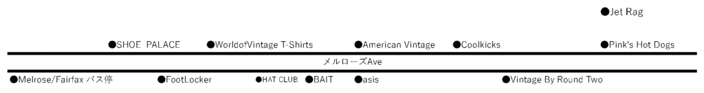 海外旅行先メルローズAveには、ヴィンテージショップやスニーカーショップが多く、日本人バイヤーが多く買い付けに来ています。