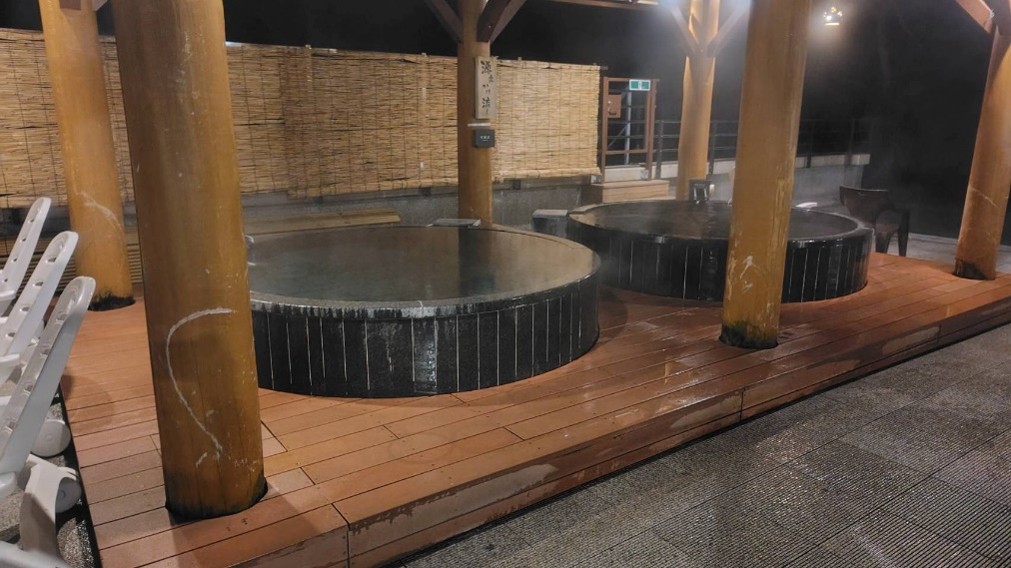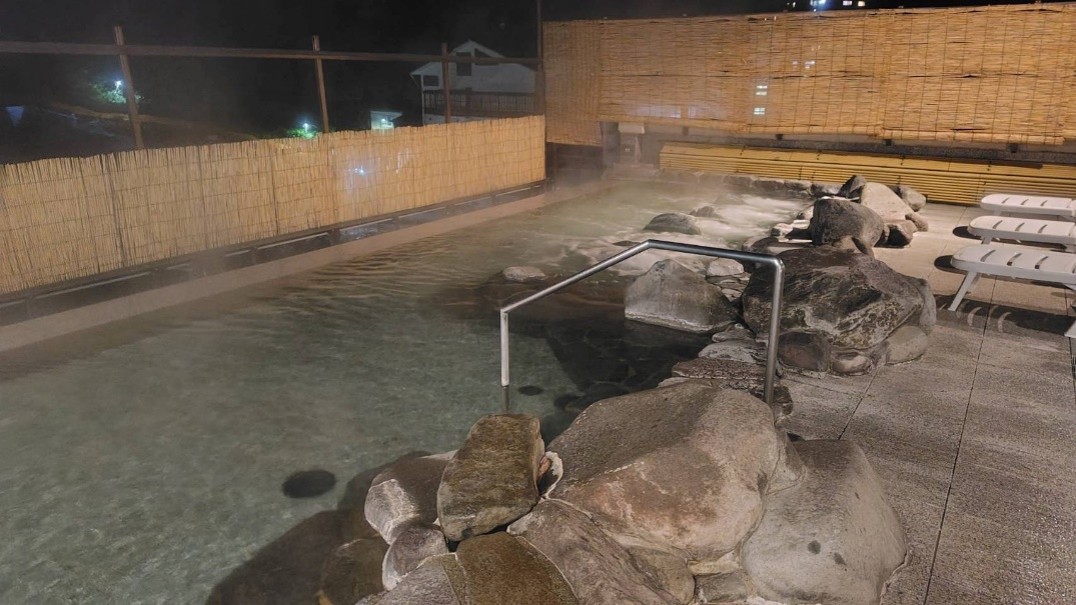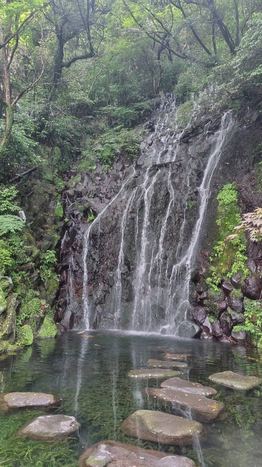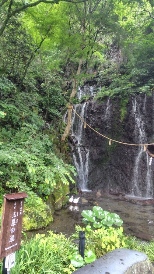 天成園の庭にある2つの瀧「玉簾の瀧」と「飛えんの瀧」。