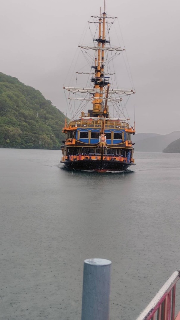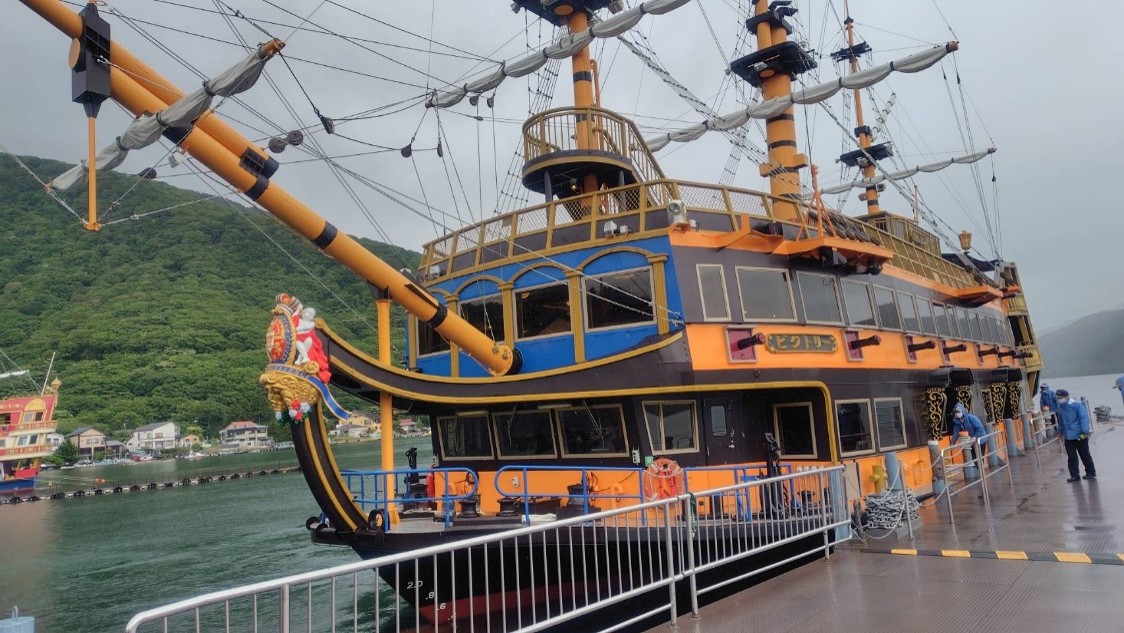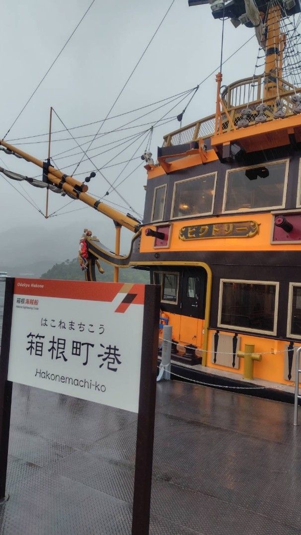 ロープウェイを降りるとすぐに箱根町港があり、海賊船に搭船。ちなみに箱根フリーパスを使っています。