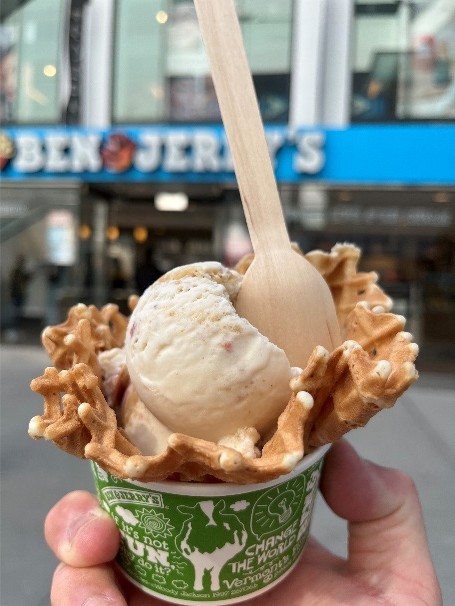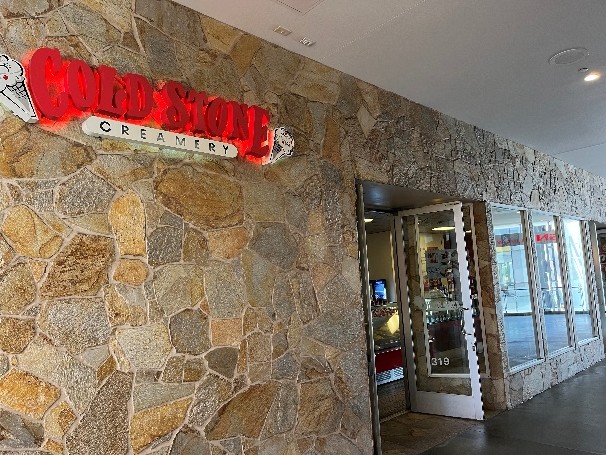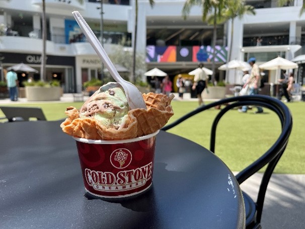 COLD STONE CREAMERYで、美味しいアイスを買って、中庭で最高の景色を前に食べる。