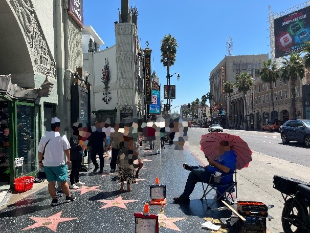 ハリウッドの通りを歩いていると、仮想したパフォーマーがたくさんいます。